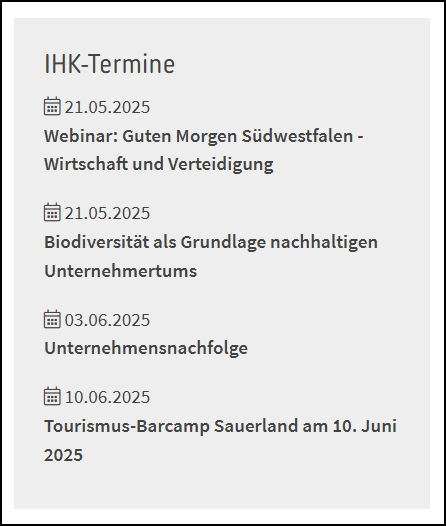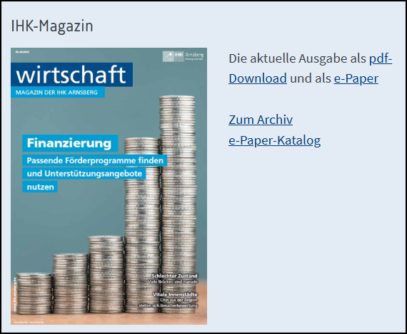 Auf der Internet-Seite sind viele Infos und Angebote von der IHK Arnsberg.