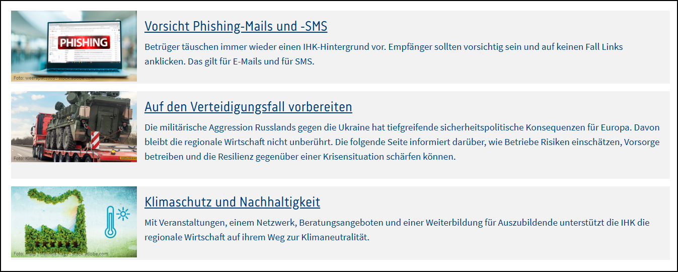 Dieser Bereich ist für die wichtigsten Themen auf unserer Internet-Seite.