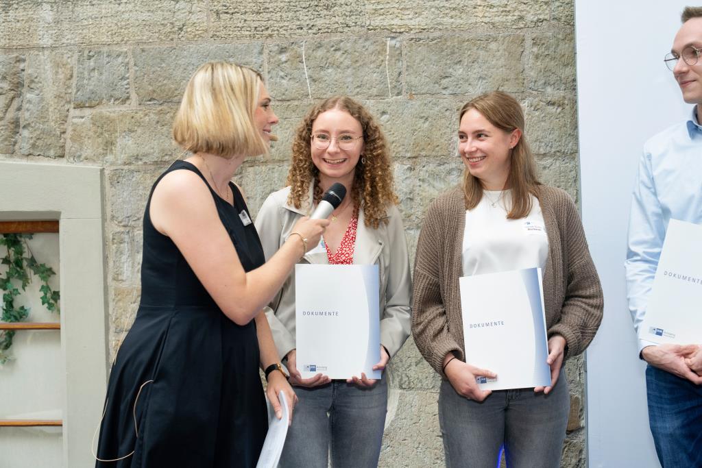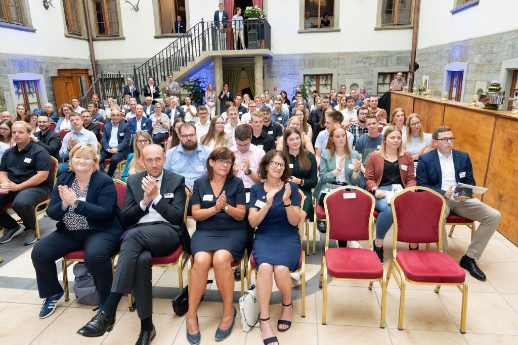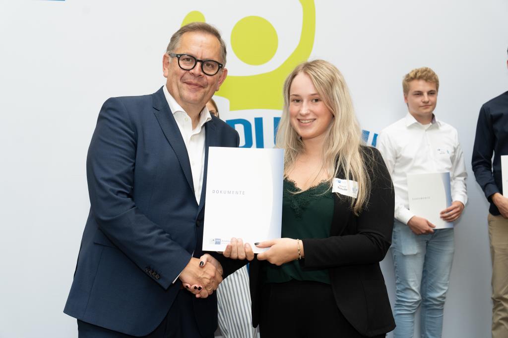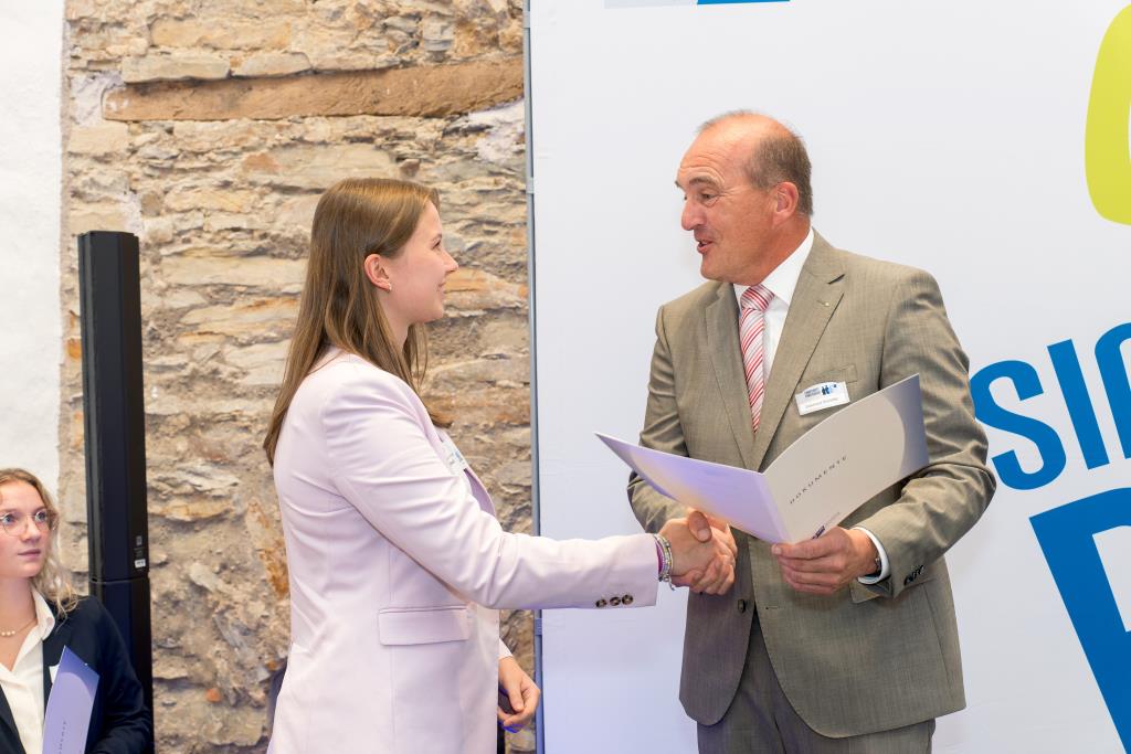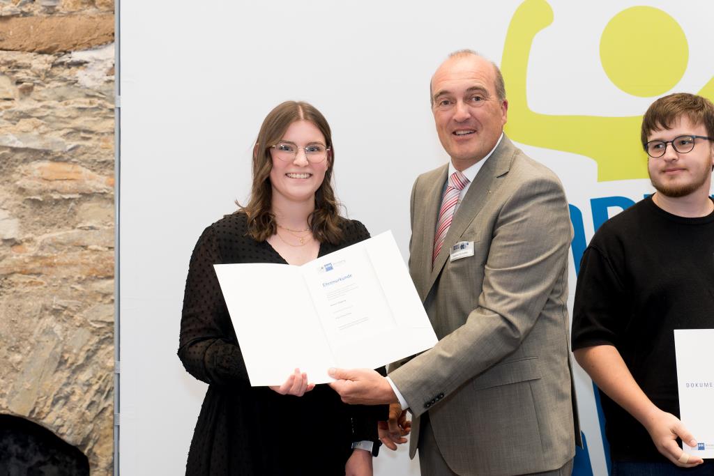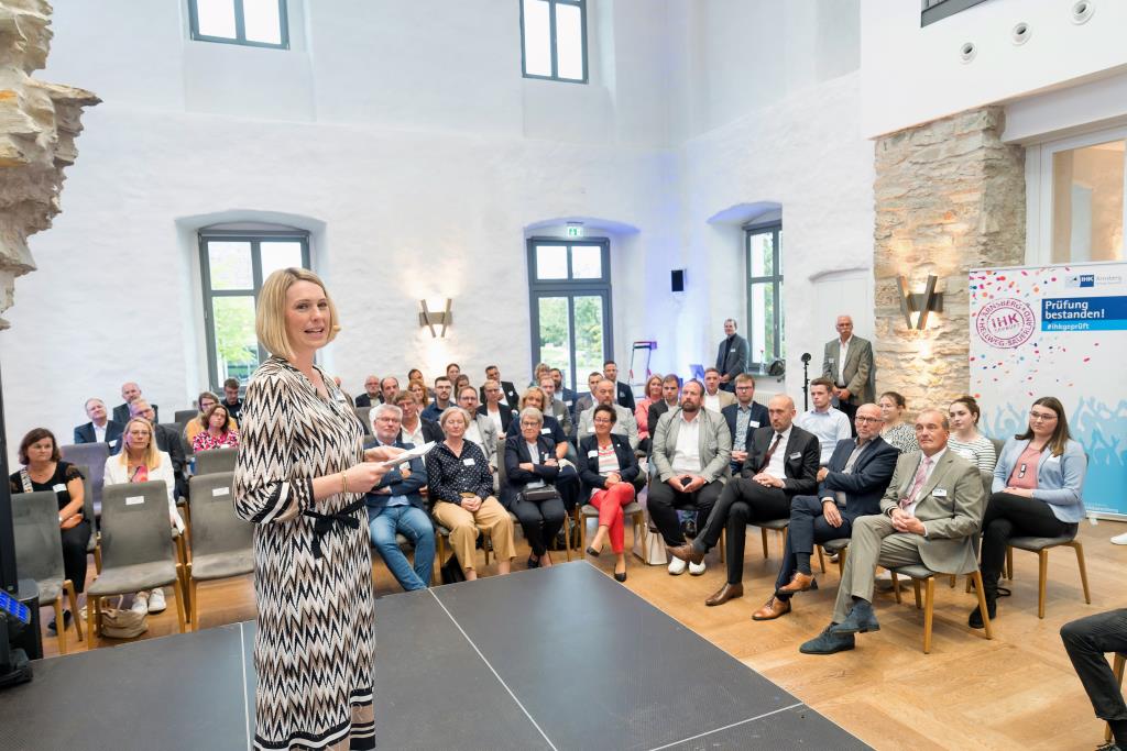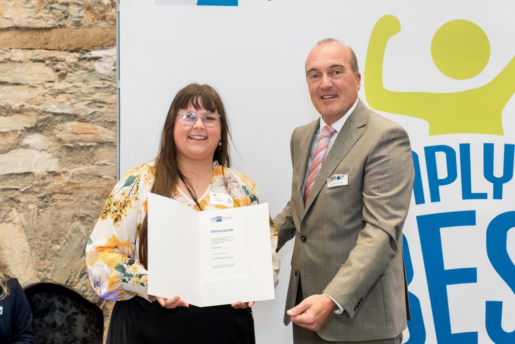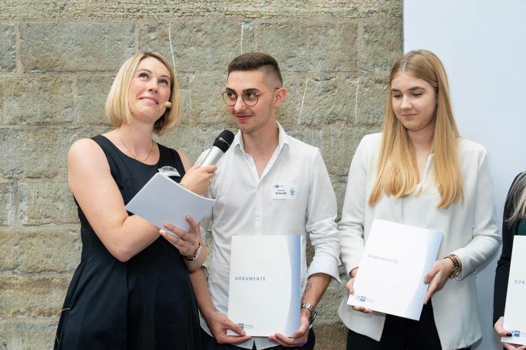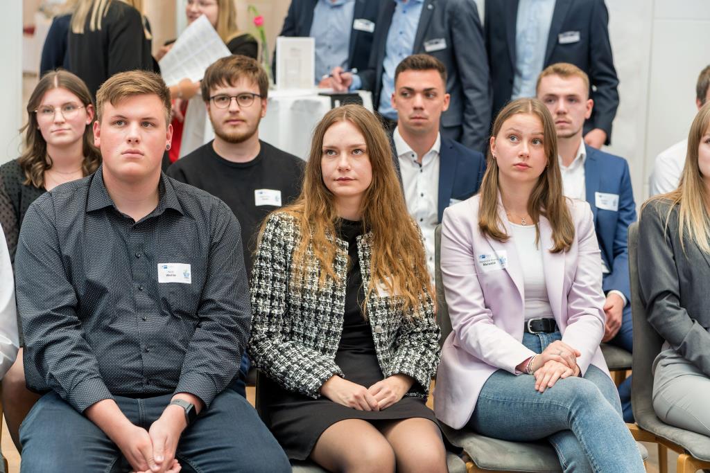 Knappstein und Schieffer dankten zudem den zahlreichen Unterstützern der Ausbildungs- und Weiterbildungsbesten. Dazu gehörten Familien, Freunde, die Ausbilder in den Unternehmen sowie die Lehrerinnen und Lehrer an den Berufsschulen. Darüber hinaus lobten sie den ehrenamtlichen Einsatz der Prüferinnen und Prüfern, die sich in den 130 Prüfungsausschüssen engagieren und ohne die das IHK-Prüfungssystem und die gesamte duale Ausbildung nicht funktionieren würde.
