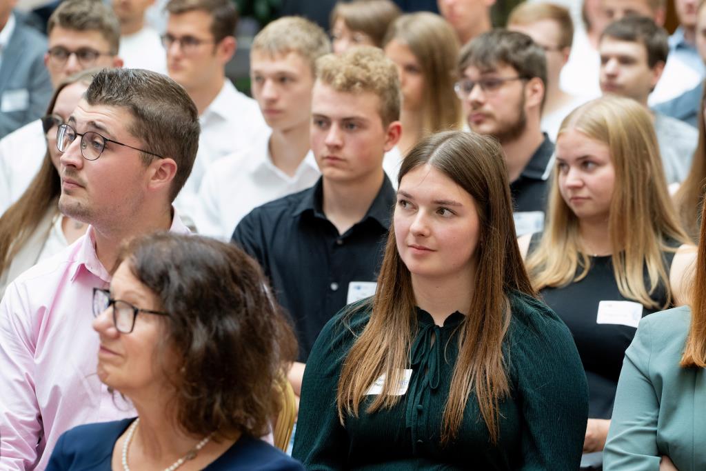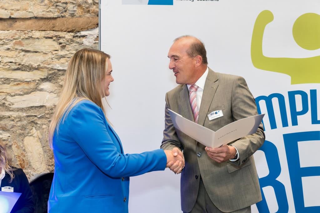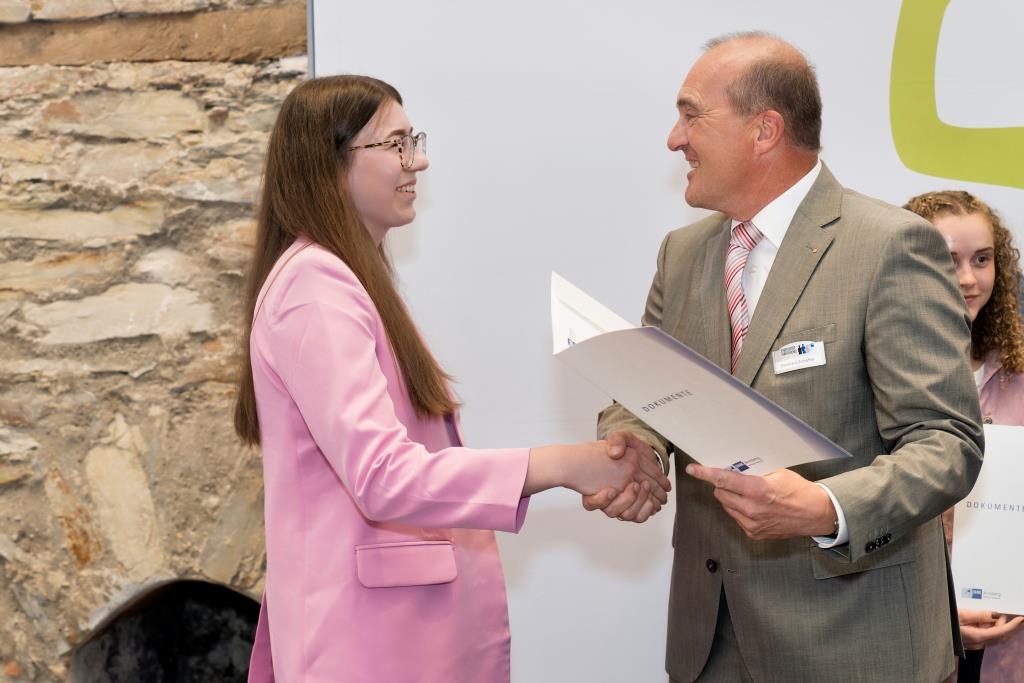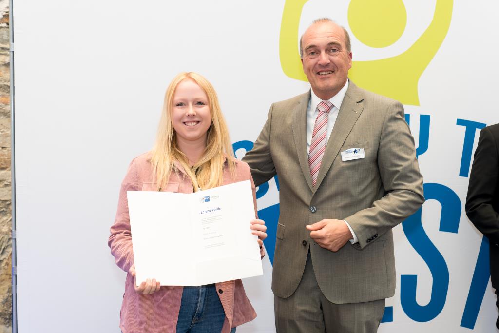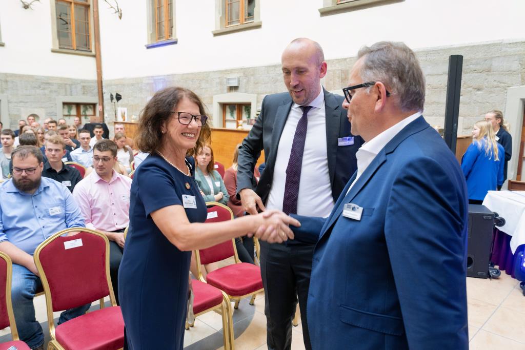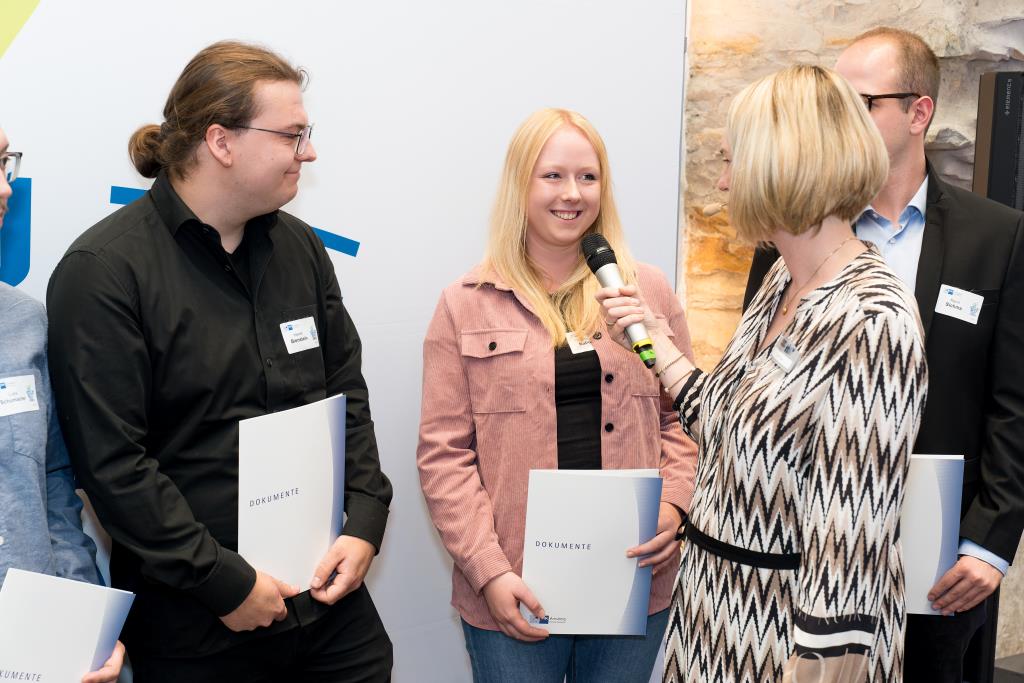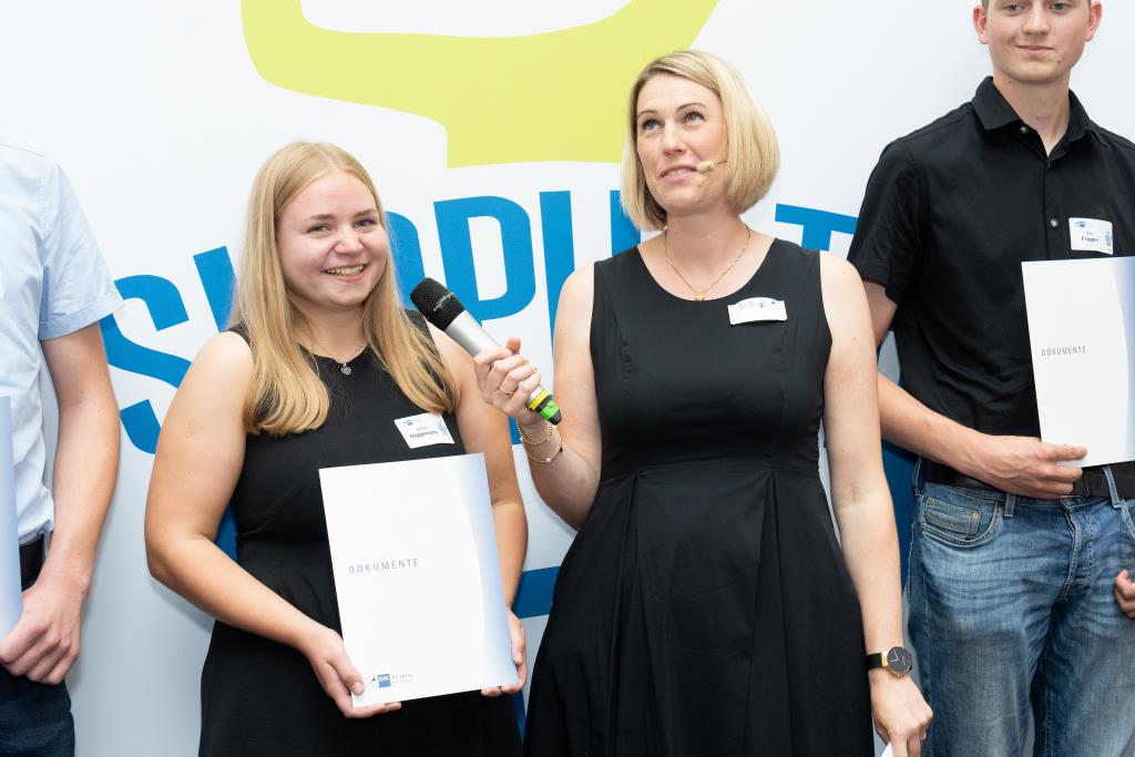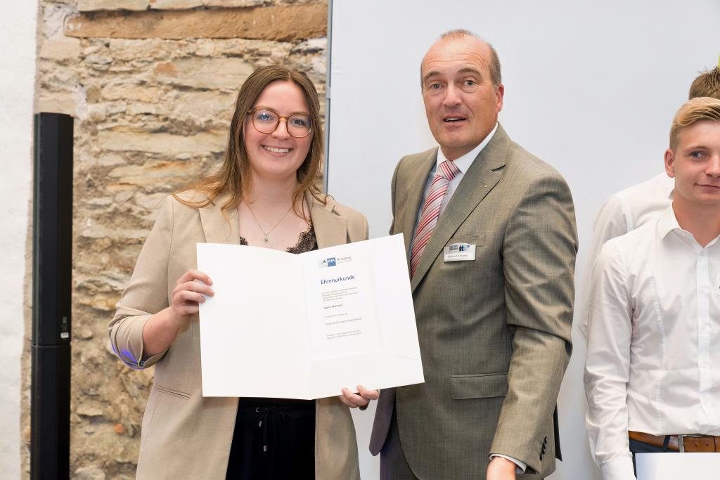 Knappstein und Schieffer dankten zudem den zahlreichen Unterstützern der Ausbildungs- und Weiterbildungsbesten. Dazu gehörten Familien, Freunde, die Ausbilder in den Unternehmen sowie die Lehrerinnen und Lehrer an den Berufsschulen. Darüber hinaus lobten sie den ehrenamtlichen Einsatz der Prüferinnen und Prüfern, die sich in den 130 Prüfungsausschüssen engagieren und ohne die das IHK-Prüfungssystem und die gesamte duale Ausbildung nicht funktionieren würde.