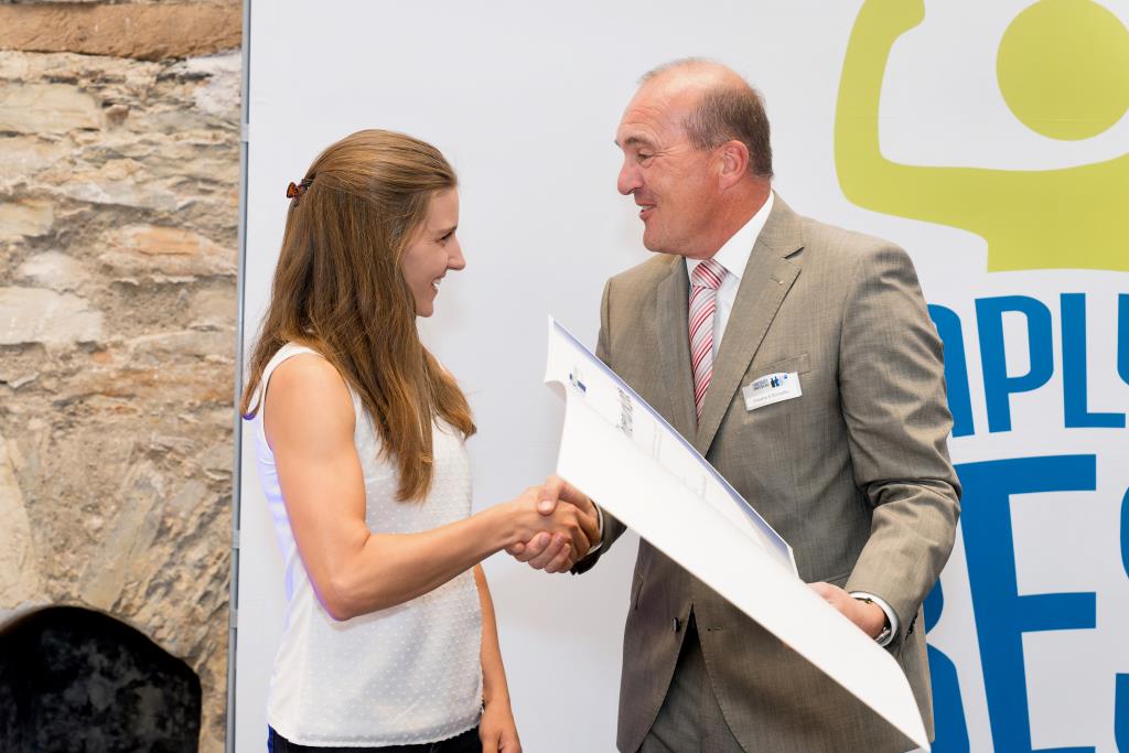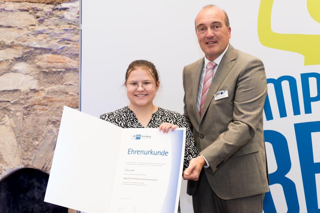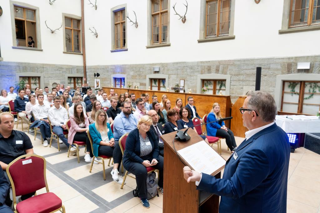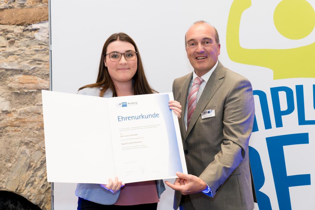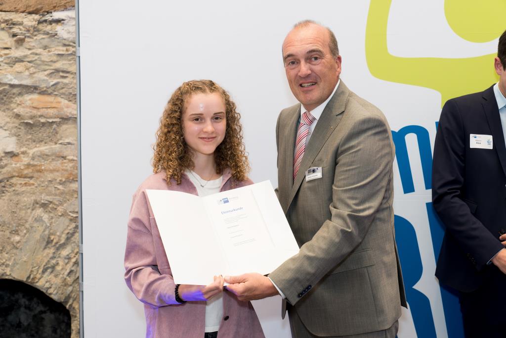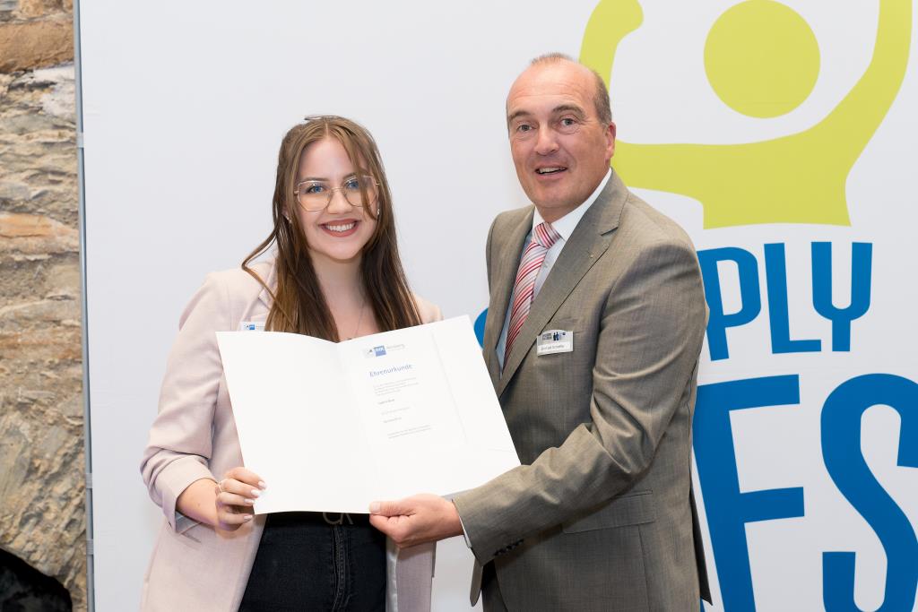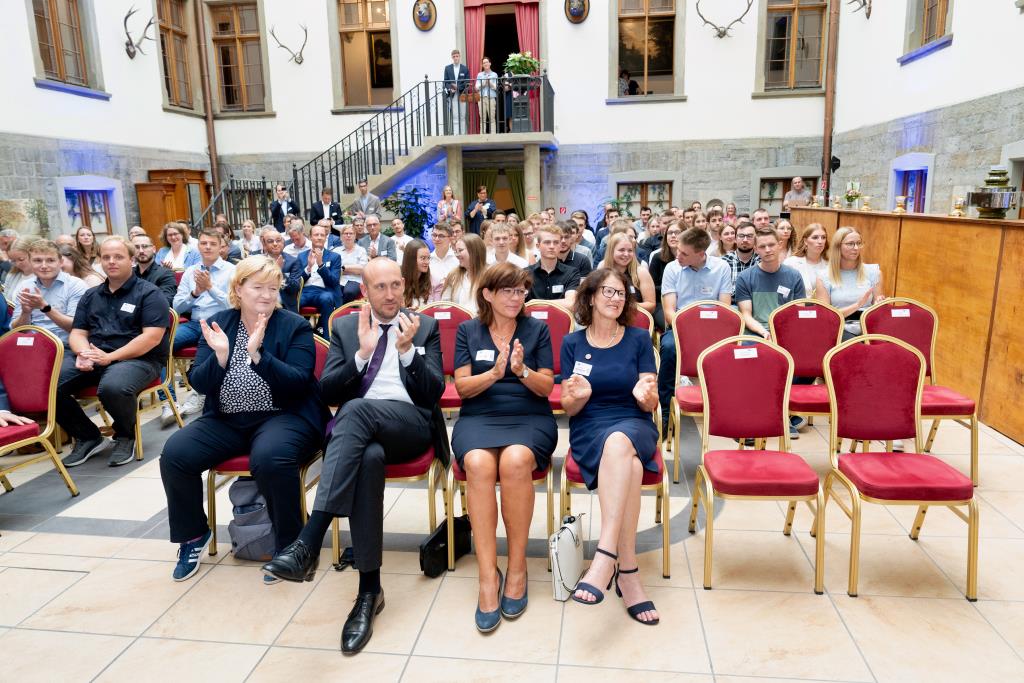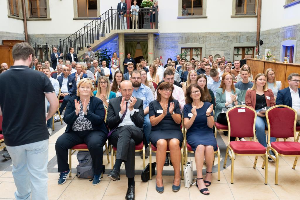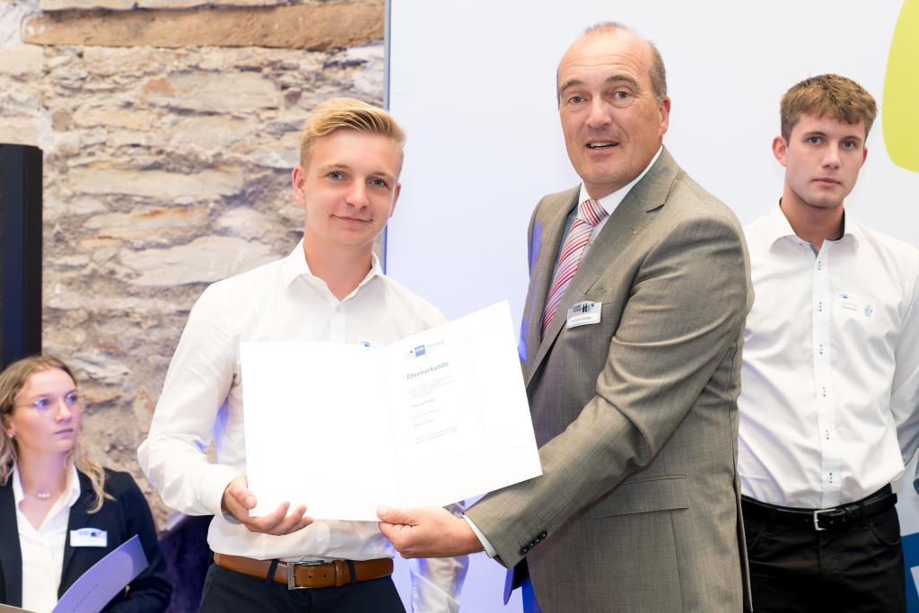 Knappstein und Schieffer dankten zudem den zahlreichen Unterstützern der Ausbildungs- und Weiterbildungsbesten. Dazu gehörten Familien, Freunde, die Ausbilder in den Unternehmen sowie die Lehrerinnen und Lehrer an den Berufsschulen. Darüber hinaus lobten sie den ehrenamtlichen Einsatz der Prüferinnen und Prüfern, die sich in den 130 Prüfungsausschüssen engagieren und ohne die das IHK-Prüfungssystem und die gesamte duale Ausbildung nicht funktionieren würde.