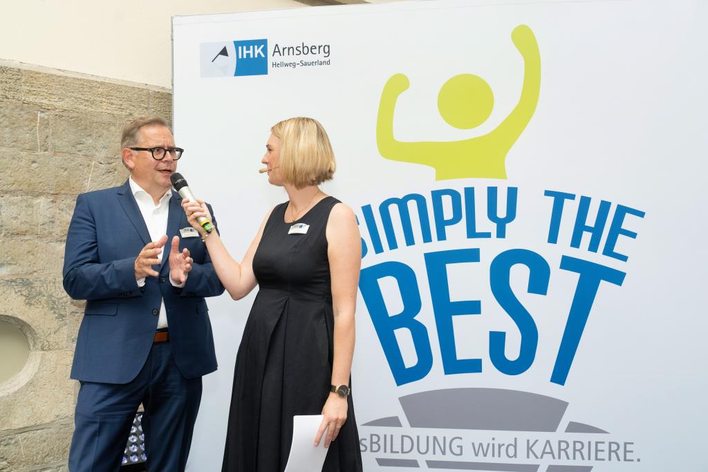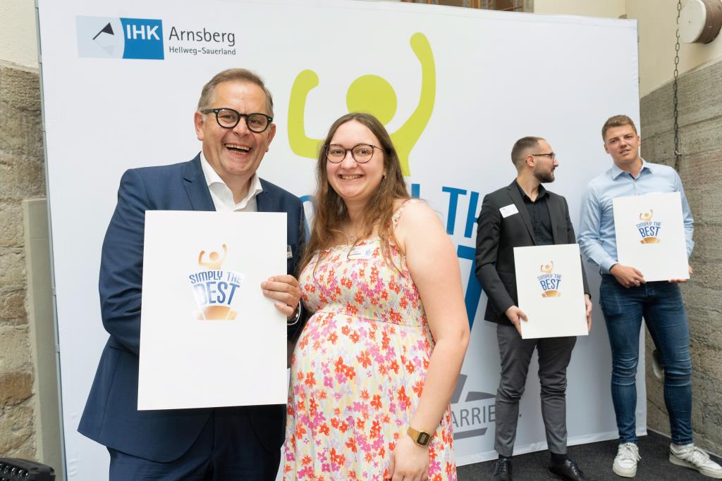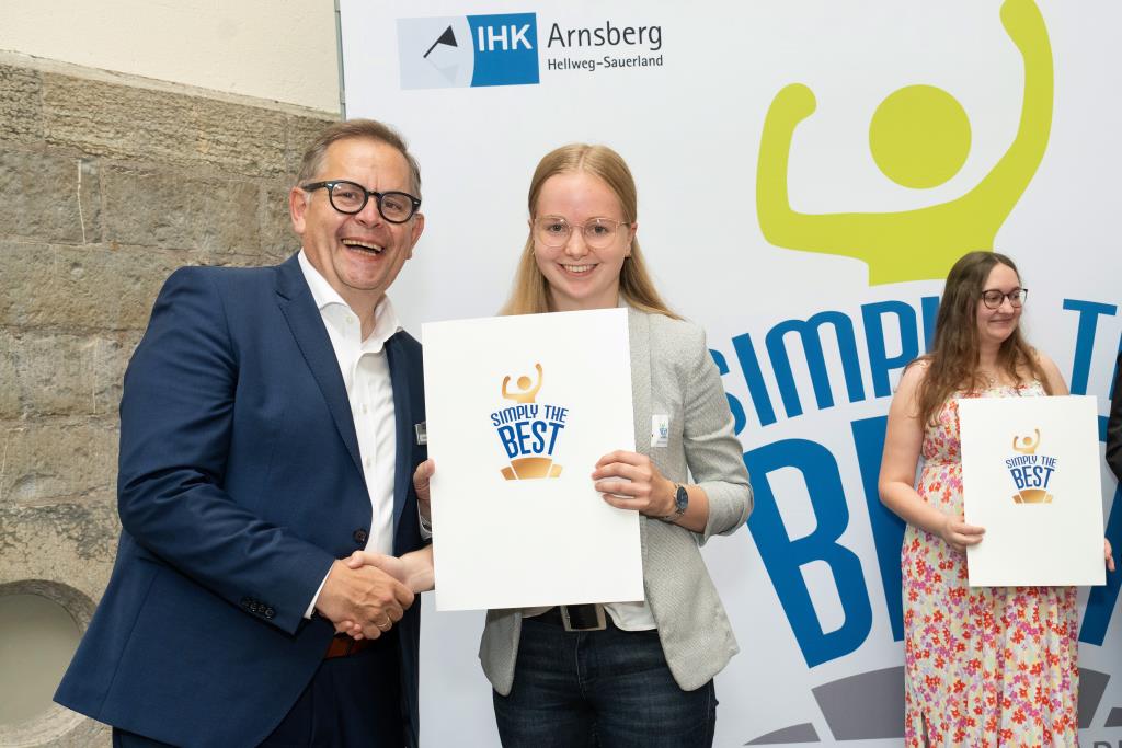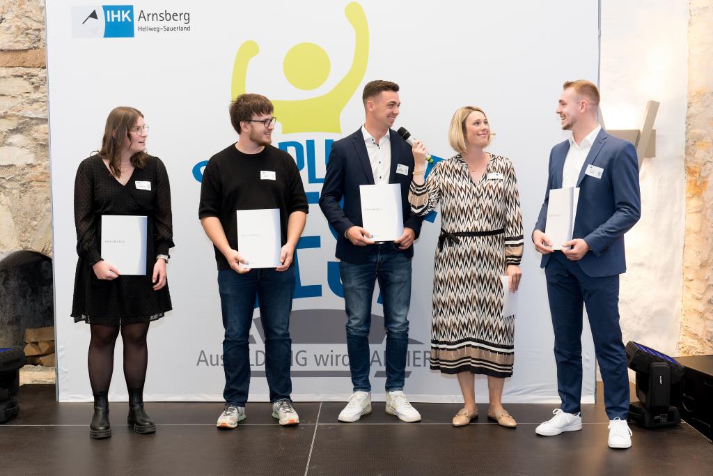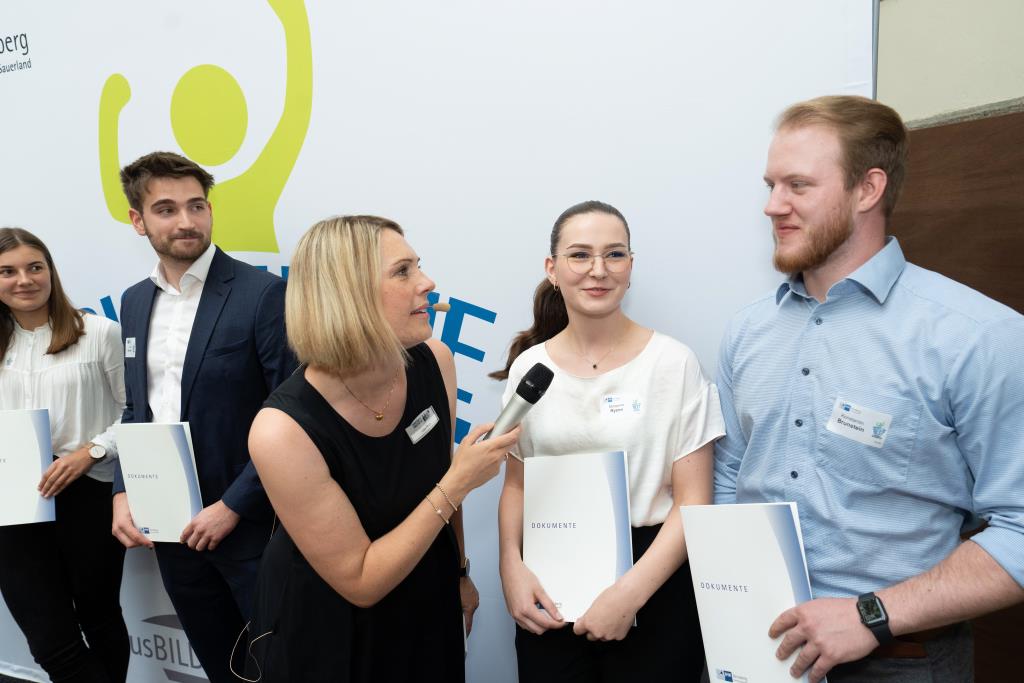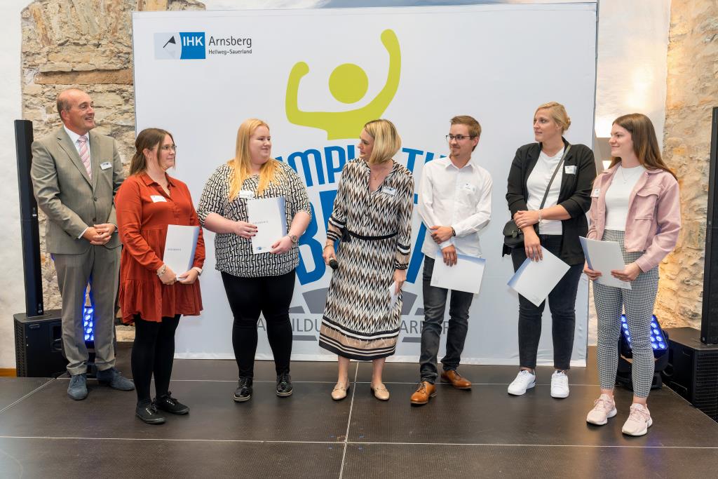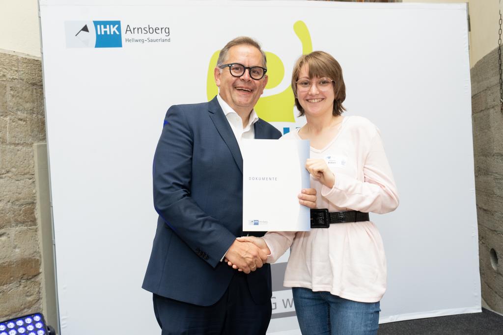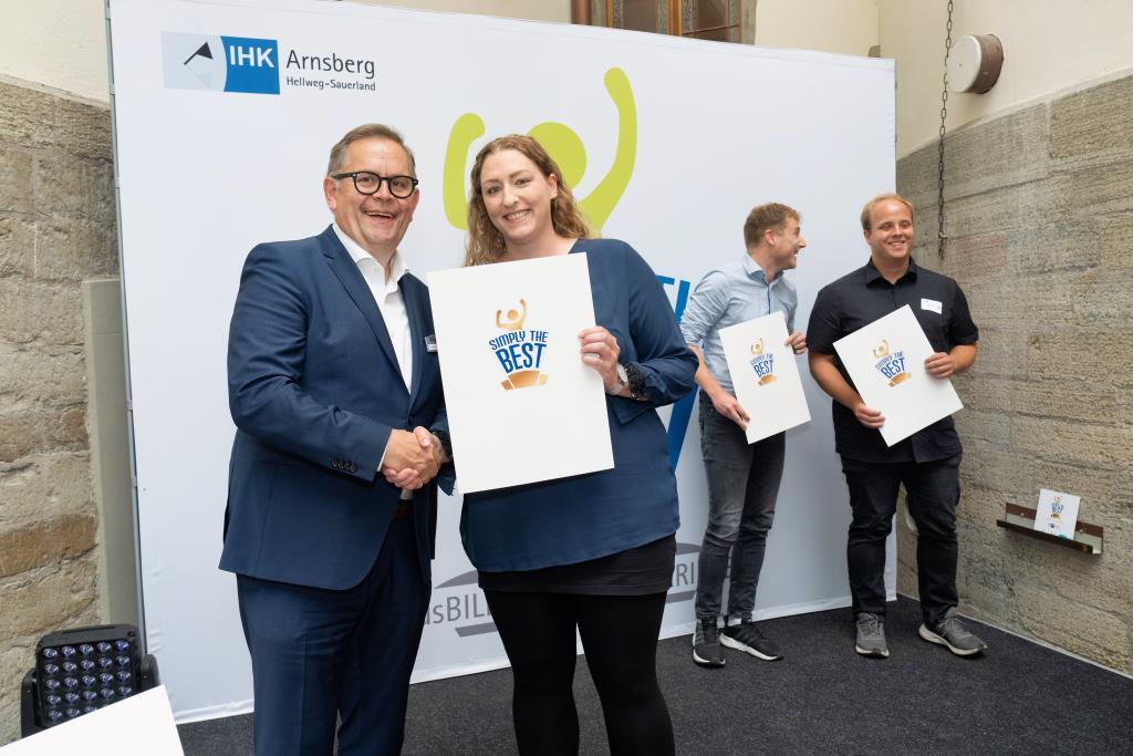 Beide IHK-Vizepräsident hoben zudem hervor, dass die Ausgezeichneten Teil einer erfreulichen Entwicklung seien. Denn jüngste Erhebungen zeigen, dass sich wieder mehr junge Menschen für eine Berufsausbildung als für ein Studium entscheiden. Zu den weiteren Gratulanten gehörten IHK-Hauptgeschäftsführer Jörg Nolte sowie in Herdringen Arnsbergs zweite stellvertretene Bürgermeisterin Margit Hieronymus, die stellvertretende Landrätin Hiltrud Schmidt und die Landtagsabgeordnete Dagmar Hanses und in Störmede Gesekes erste stellvertretende Bürgermeisterin Susanne Schulte Döinghaus und die stellvertretende Landrätin Heike Kruse. Die Veranstaltung moderierte IHK-Mitarbeiterin Lisa Plum. Sie entlockte in kleinen Gesprächsrunden den Absolventen viele Anekdoten aus ihrer Ausbildung und zu ihren Zukunftsplänen.