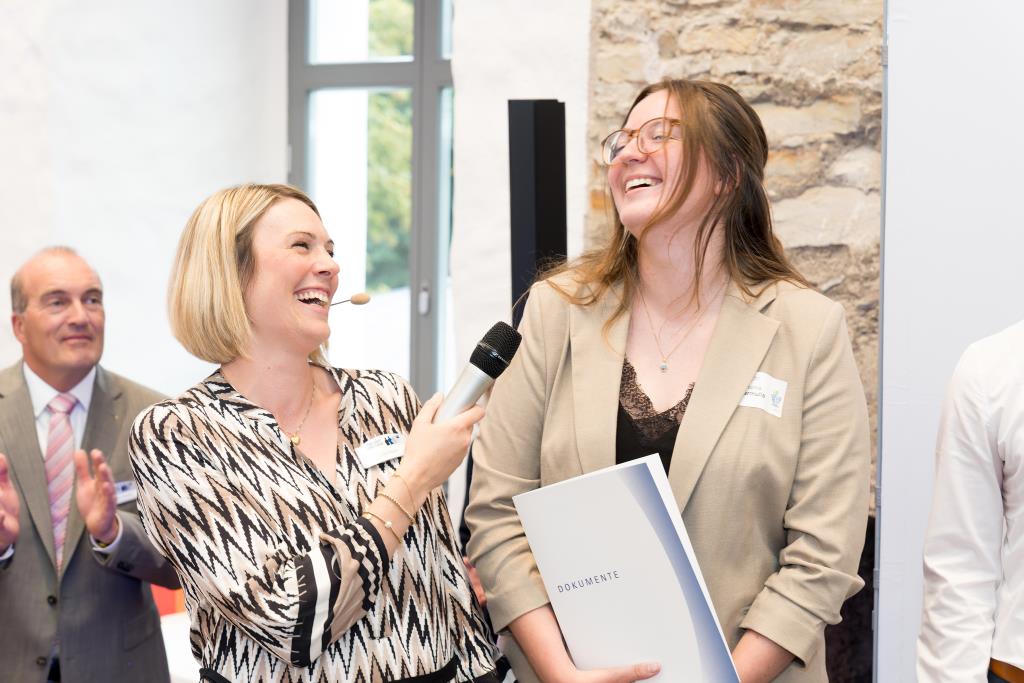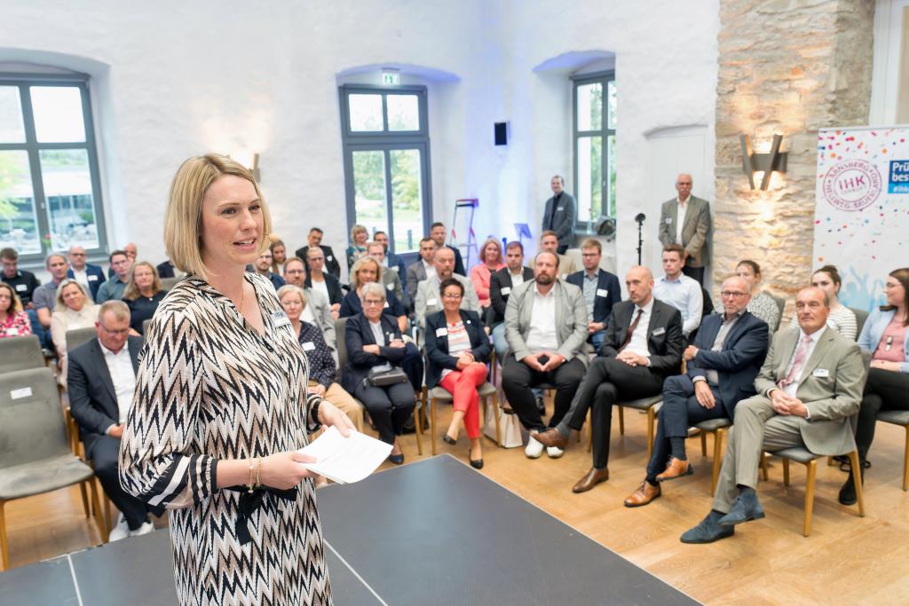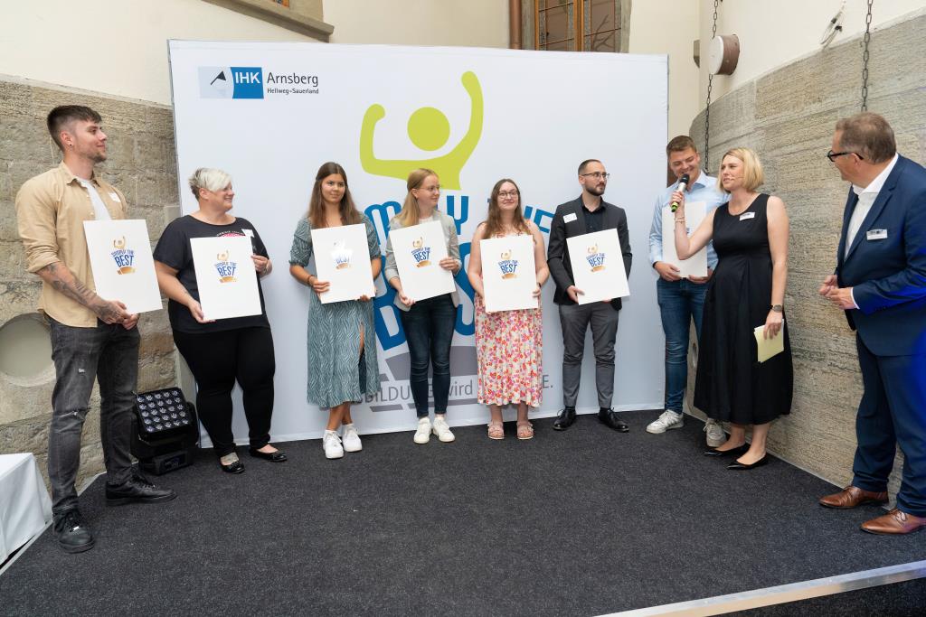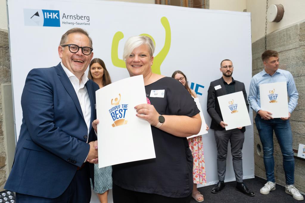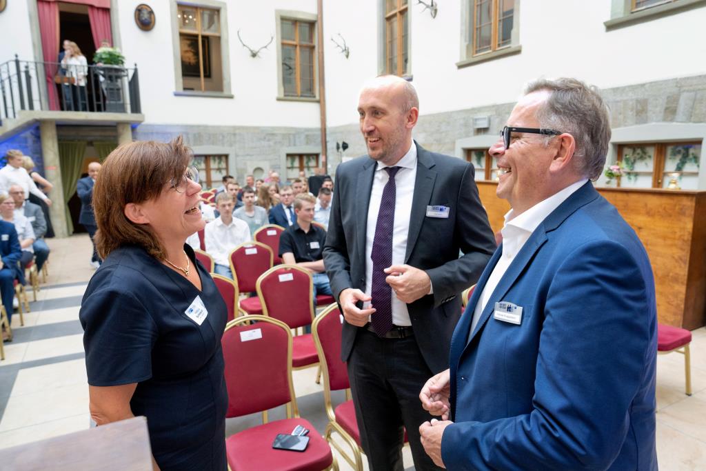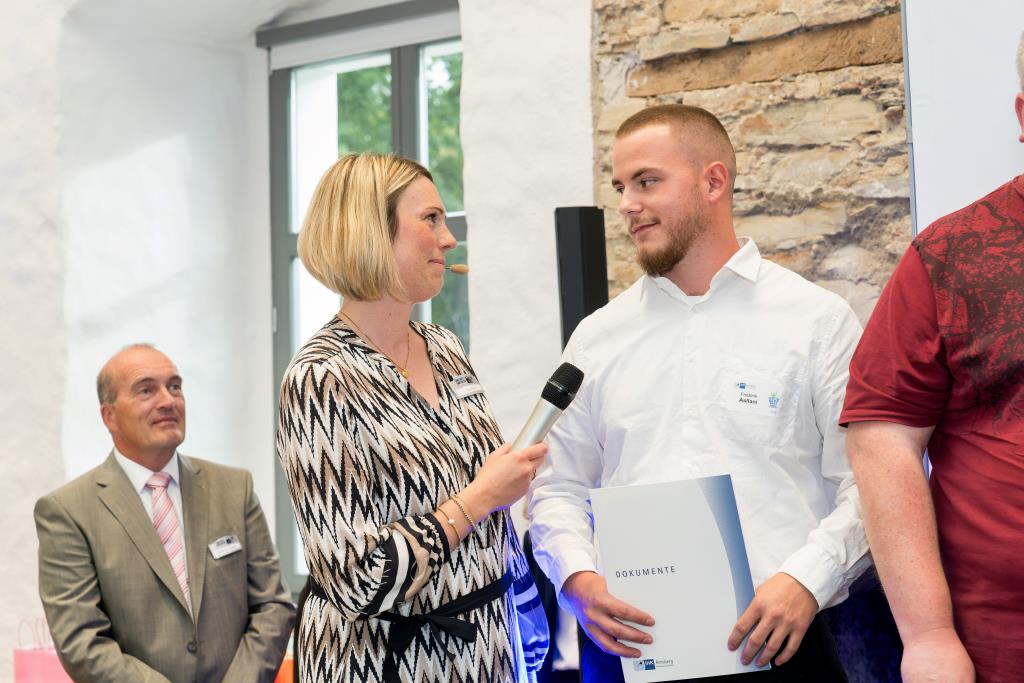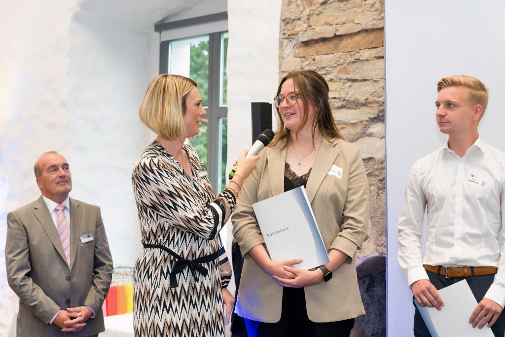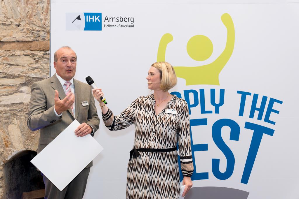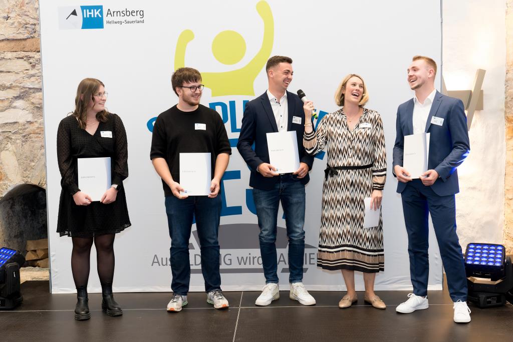 Beide IHK-Vizepräsident hoben zudem hervor, dass die Ausgezeichneten Teil einer erfreulichen Entwicklung seien. Denn jüngste Erhebungen zeigen, dass sich wieder mehr junge Menschen für eine Berufsausbildung als für ein Studium entscheiden. Zu den weiteren Gratulanten gehörten IHK-Hauptgeschäftsführer Jörg Nolte sowie in Herdringen Arnsbergs zweite stellvertretene Bürgermeisterin Margit Hieronymus, die stellvertretende Landrätin Hiltrud Schmidt und die Landtagsabgeordnete Dagmar Hanses und in Störmede Gesekes erste stellvertretende Bürgermeisterin Susanne Schulte Döinghaus und die stellvertretende Landrätin Heike Kruse. Die Veranstaltung moderierte IHK-Mitarbeiterin Lisa Plum. Sie entlockte in kleinen Gesprächsrunden den Absolventen viele Anekdoten aus ihrer Ausbildung und zu ihren Zukunftsplänen.