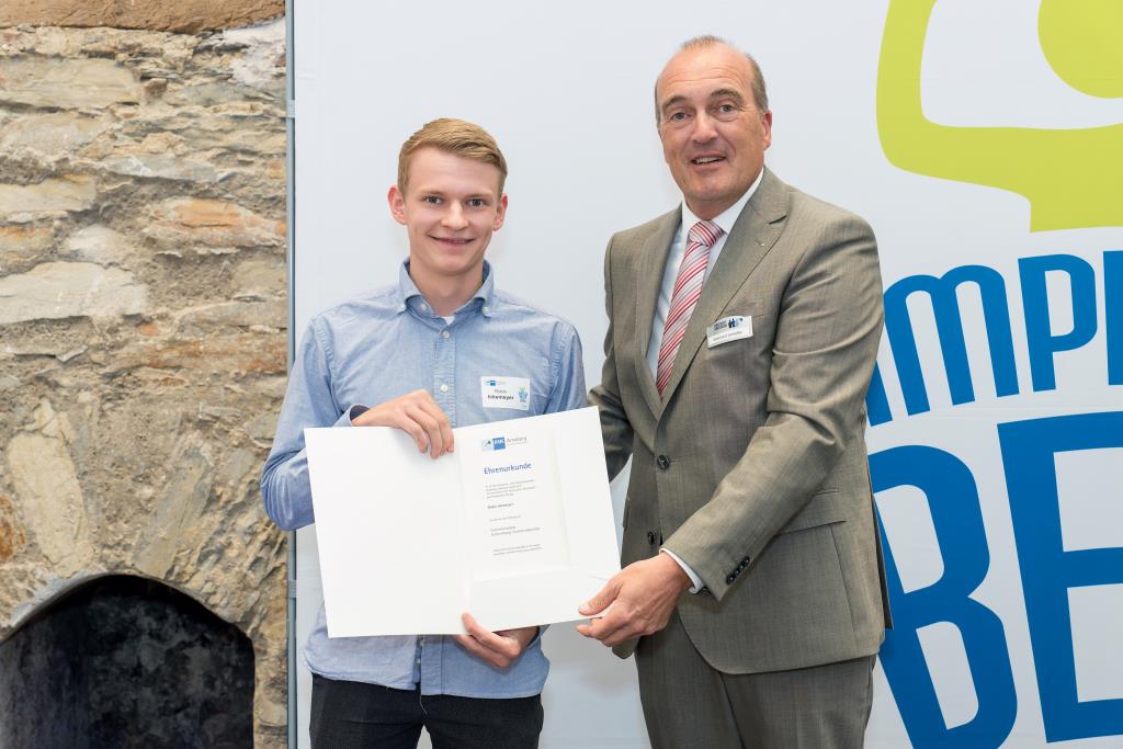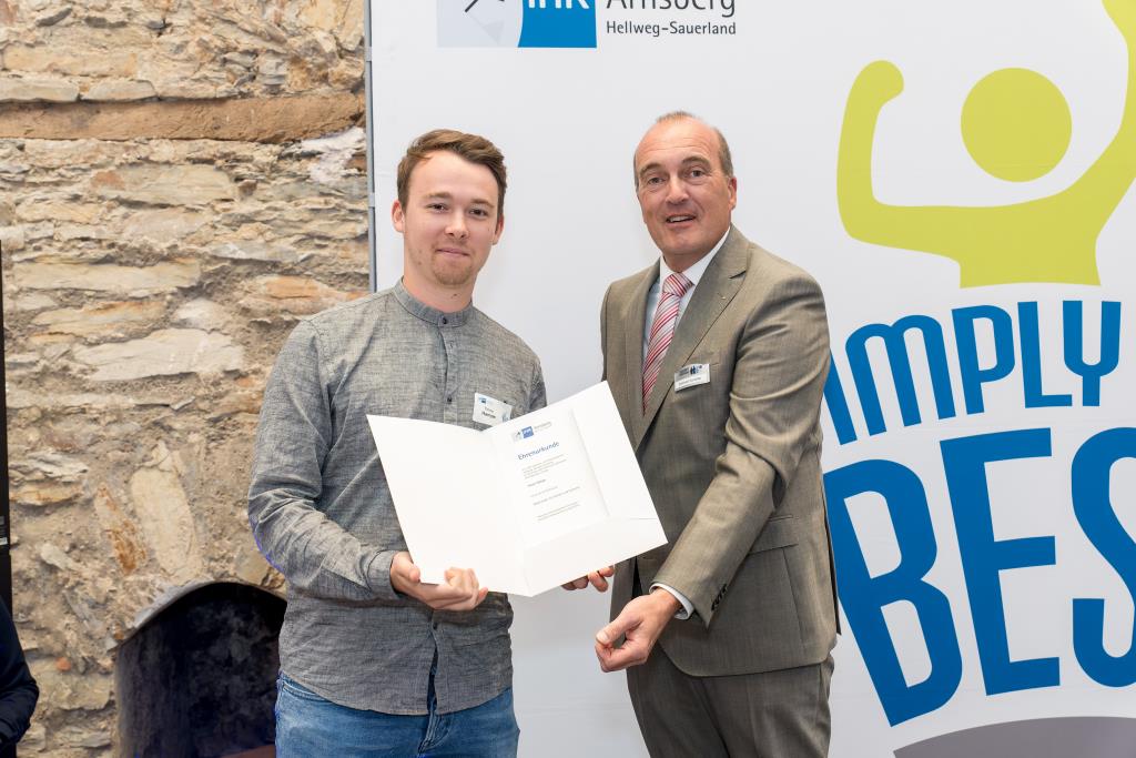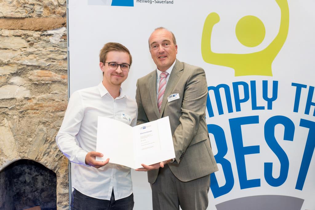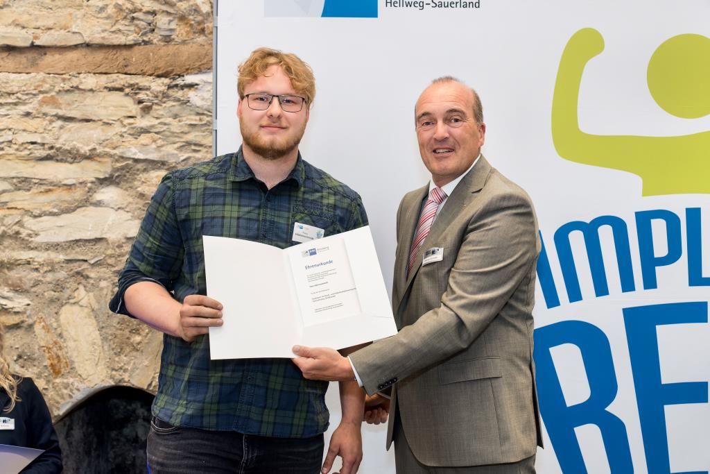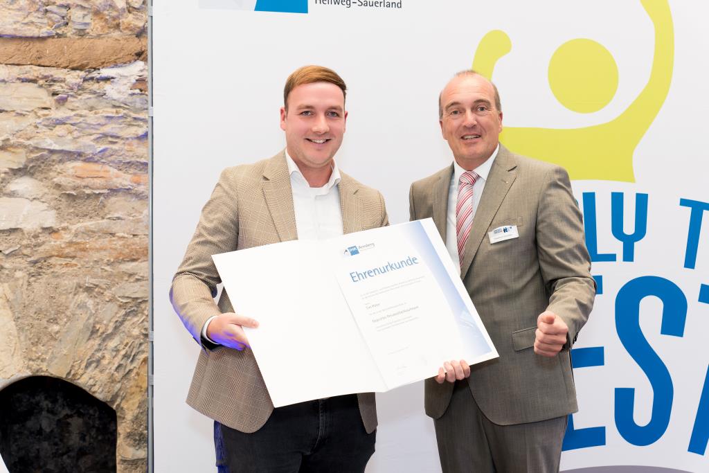Einer der vielen ausgezeichneten „Super-Azubis“ ist Paul Hense aus Meschede-Wallen. Der 21-jährige entschied sich für eine Ausbildung zum Bauzeichner bei der Dipl.-Ing. C. Köster Ingenieurgesellschaft für Tragwerksplanung mbH in Arnsberg. Schon immer war der Mescheder technisch interessiert. Durch Praktika während der Schulzeit sowie die Vorliebe für Mathematik und Physik, entschloss er sich die Ausbildung in diesem Beruf zu beginnen. „Vor allem die Abwechslung während der Ausbildung war klasse. Neben der Tragwerkplanung war auch die Kommunikation mit anderen Architekten immer interessant. Zudem durfte ich auch an großen Projekten mitwirken“, erzählt Paul Hense, der noch einen weiteren Grund zur Freude hat. Denn mit seinem Abschluss-Ergebnis ist der ausgebildete Bauzeichner auch in NRW Spitze und wird bei der Landesbestenehrung noch einmal ausgezeichnet. „Das kam schon überraschend“, sagt Paul Hense, der auch schon Zukunftspläne hat: „Ich beginne an der FH in Bochum ein Studium in Bauingenieurwesen und wollte unbedingt an eine Fachhochschule, da diese praxisnäher ist.“