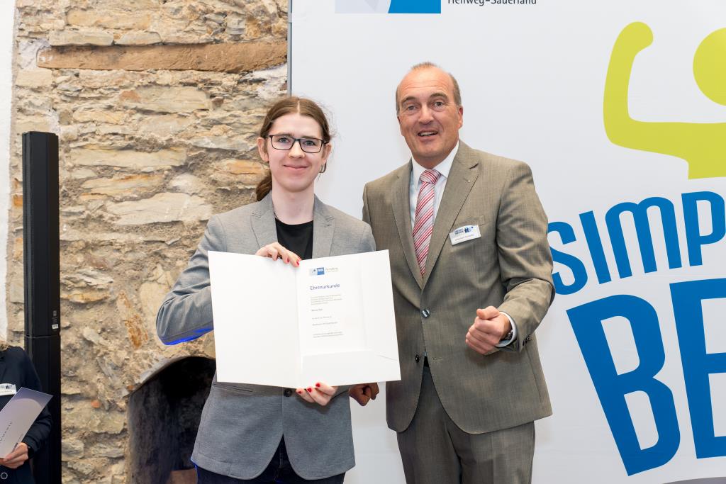 Einer der ausgezeichneten „Super-Azubis“ ist auch Marvin Alex aus Arnsberg. Der 22-jährige hat den Beruf des Industriekaufmanns bei der Standard-Metallwerke GmbH in Werl gelernt. „Die Ausbildung ist mit viel Flexibilität verbunden, denn man kann in alle Abteilungen reinschnuppern und das große Ganze verstehen“, ist Marvin Alex überzeugt von seinem Ausbildungsberuf. Die letzten sechs Monate seiner Ausbildung hat er im Projektmanagement verbracht. In dieser Fachabteilung arbeitet er jetzt nicht nur, sondern er hat hier auch seine Berufung gefunden. „Der technische Anteil an meiner Ausbildung hat mir besonders gefallen“, betont er. Darum hat er sich an der FH Südwestfalen in Soest für den berufsbegleitenden Bachelor-Studiengang Wirtschaftsingenieurwesen Maschinenbau eingeschrieben. Die nächsten viereinhalb Jahre wird er immer samstags die Vorlesungen besuchen. Sein Ziel: im Projektmanagement aufsteigen und als Projektingenieur eigene Projekte übernehmen.