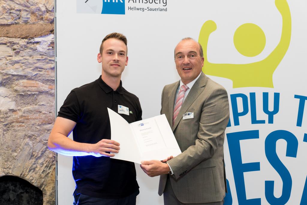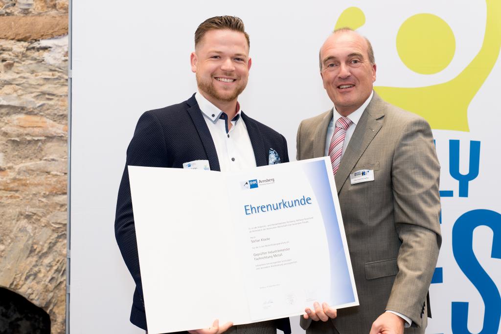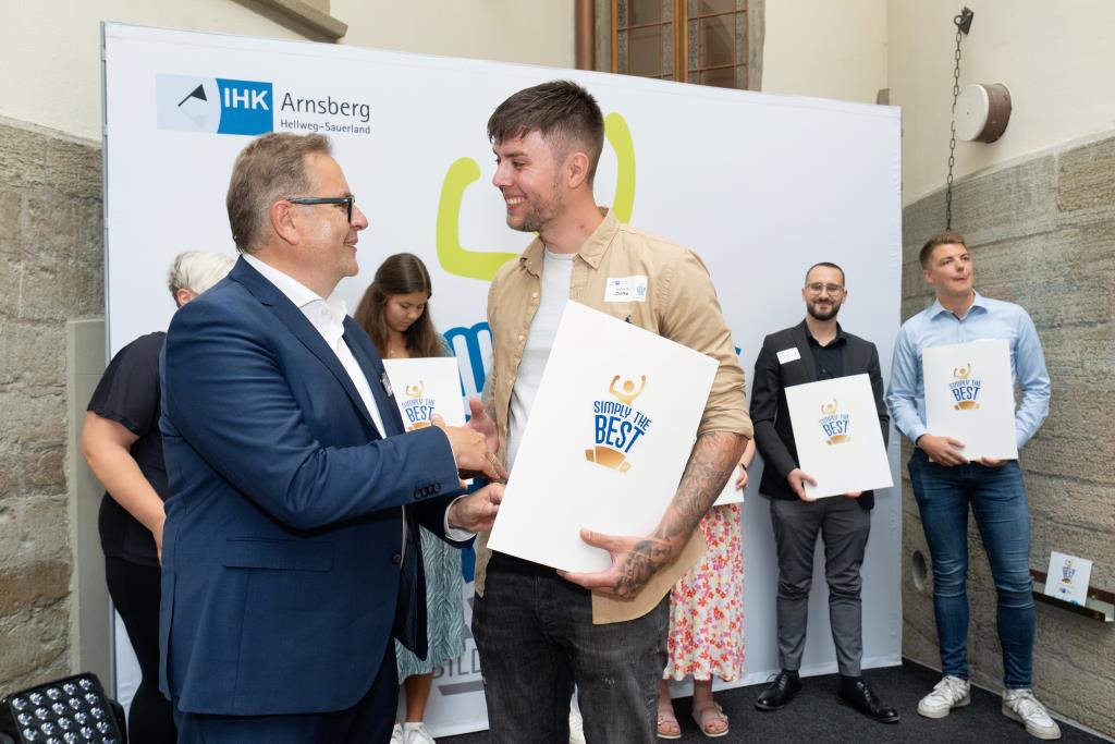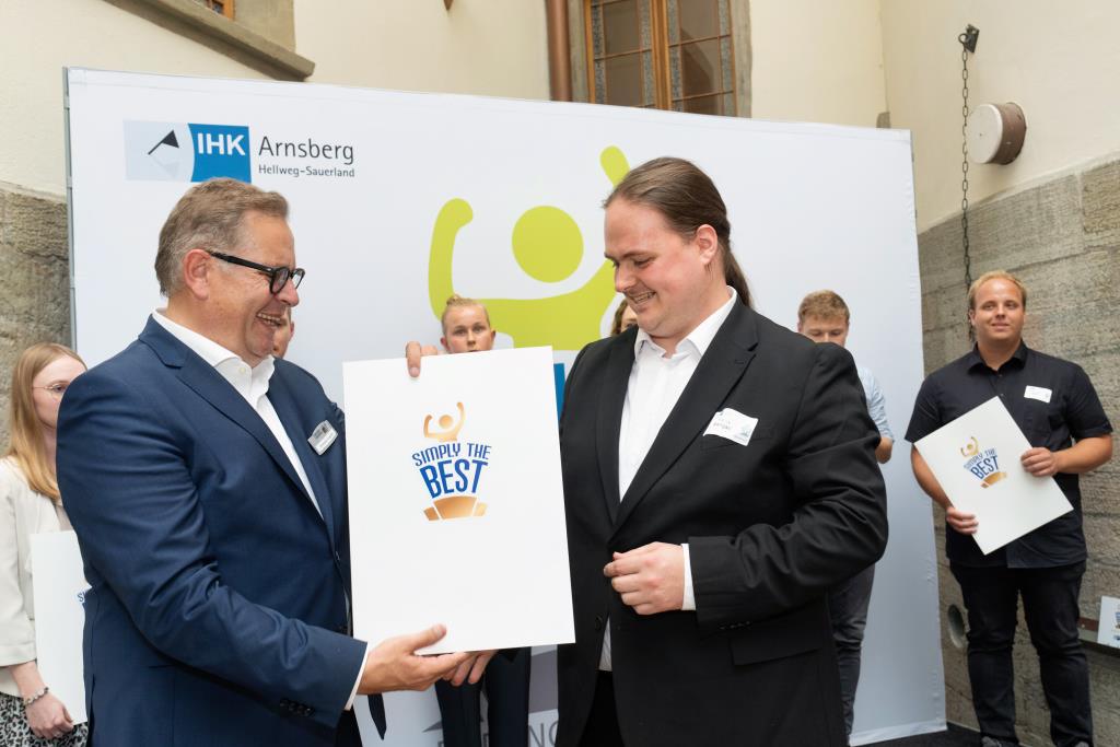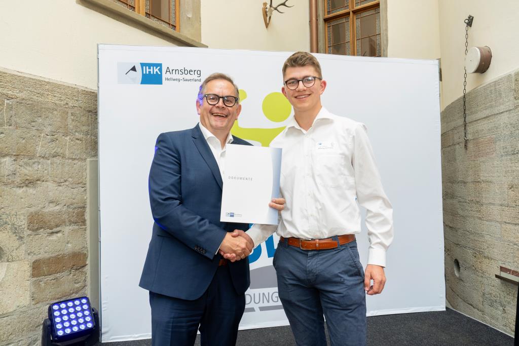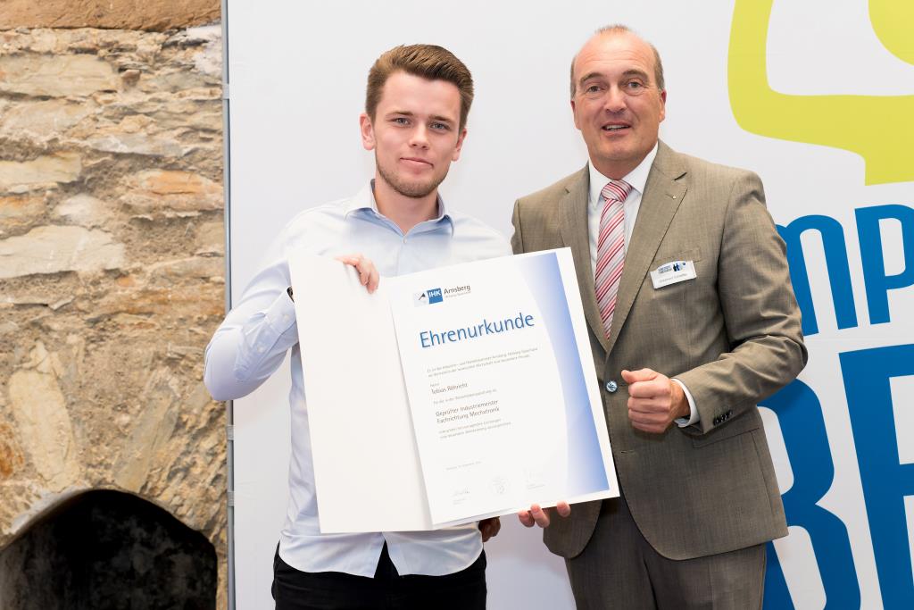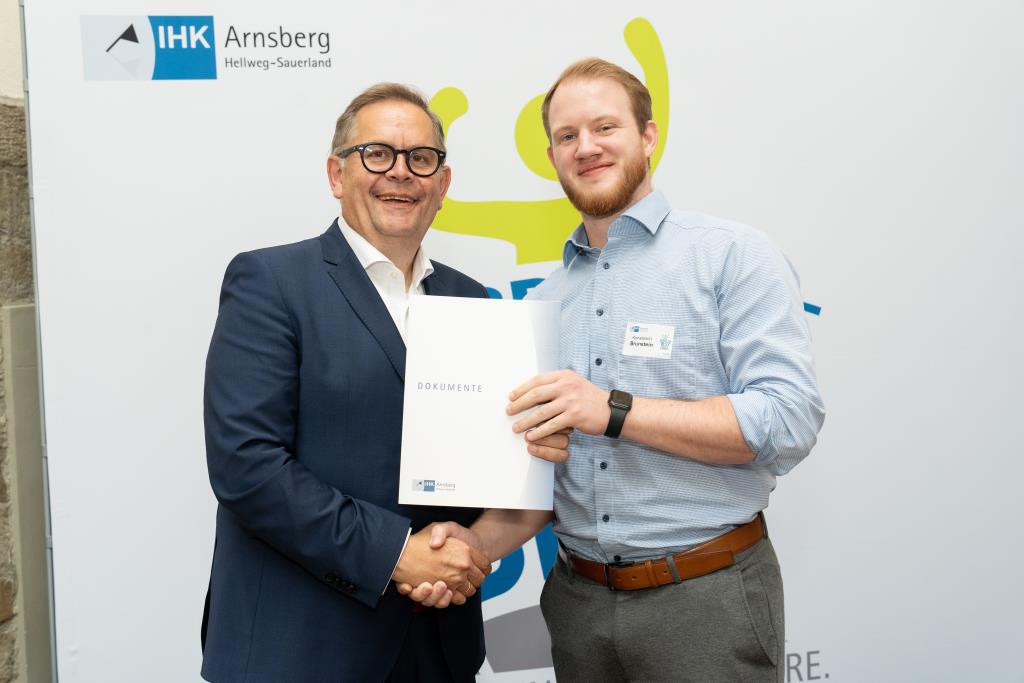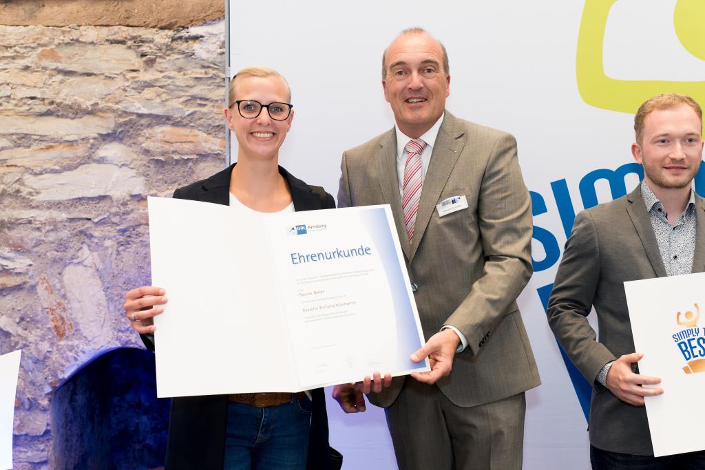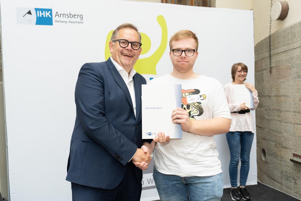 Insgesamt 111 Auszubildende sowie 38 Weiterbildungsabsolventen aus dem Hochsauerlandkreis und dem Kreis Soest hat die IHK für ihre hervorragenden Leistungen ausgezeichnet. Sie haben in ihren Abschlussprüfungen 92 Punkte oder mehr geholt und erhielten aus den Händen der IHK-Vizepräsidenten Andreas Knappstein und Ekkehart Schieffer ihre Ehrenurkunde.