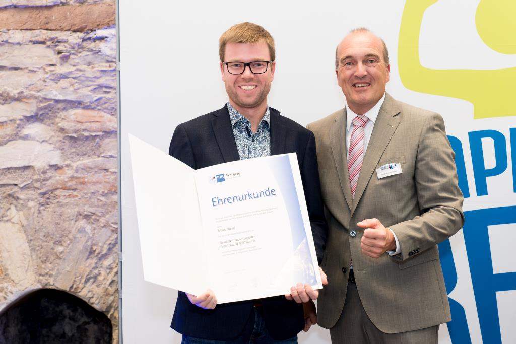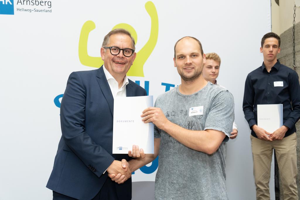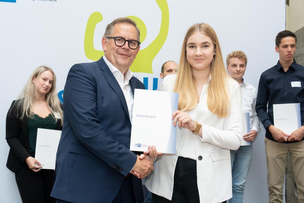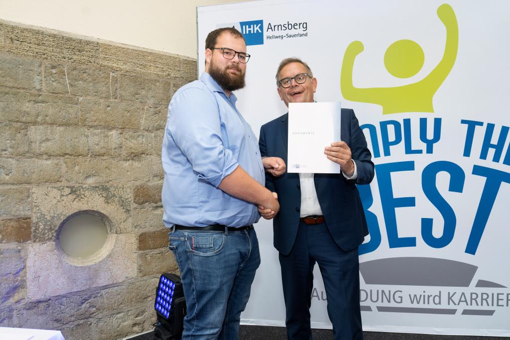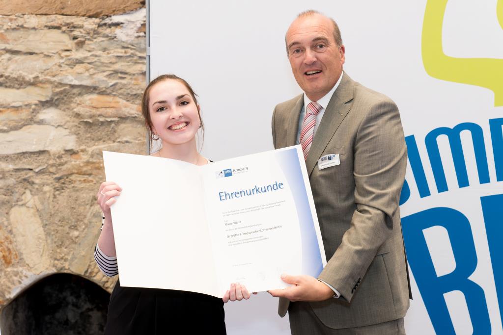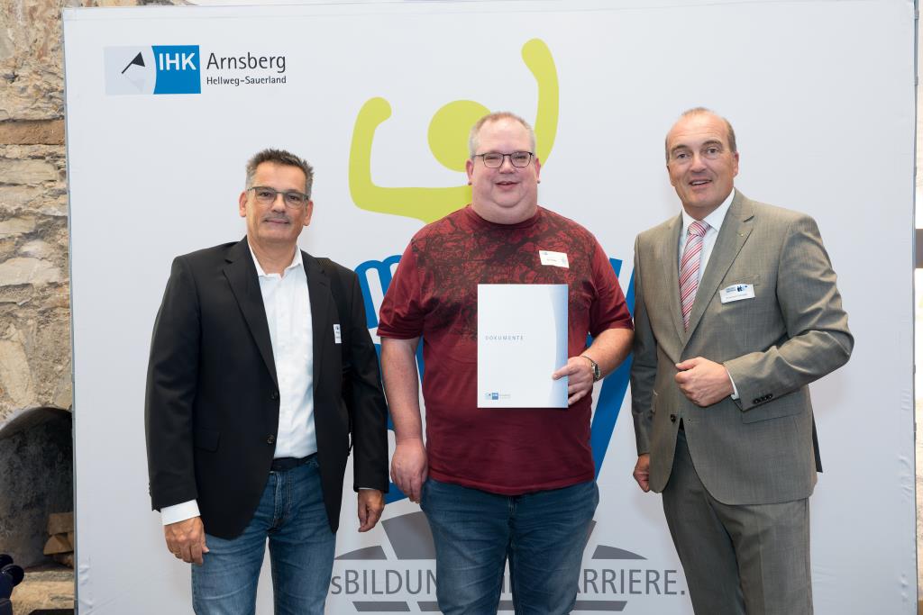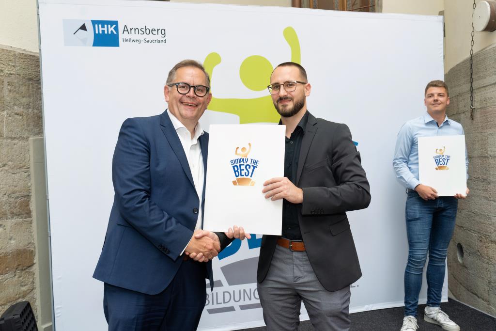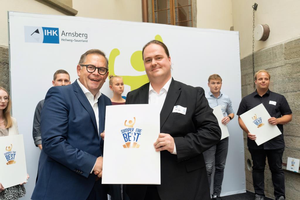 Insgesamt 111 Auszubildende sowie 38 Weiterbildungsabsolventen aus dem Hochsauerlandkreis und dem Kreis Soest hat die IHK für ihre hervorragenden Leistungen ausgezeichnet. Sie haben in ihren Abschlussprüfungen 92 Punkte oder mehr geholt und erhielten aus den Händen der IHK-Vizepräsidenten Andreas Knappstein und Ekkehart Schieffer ihre Ehrenurkunde.