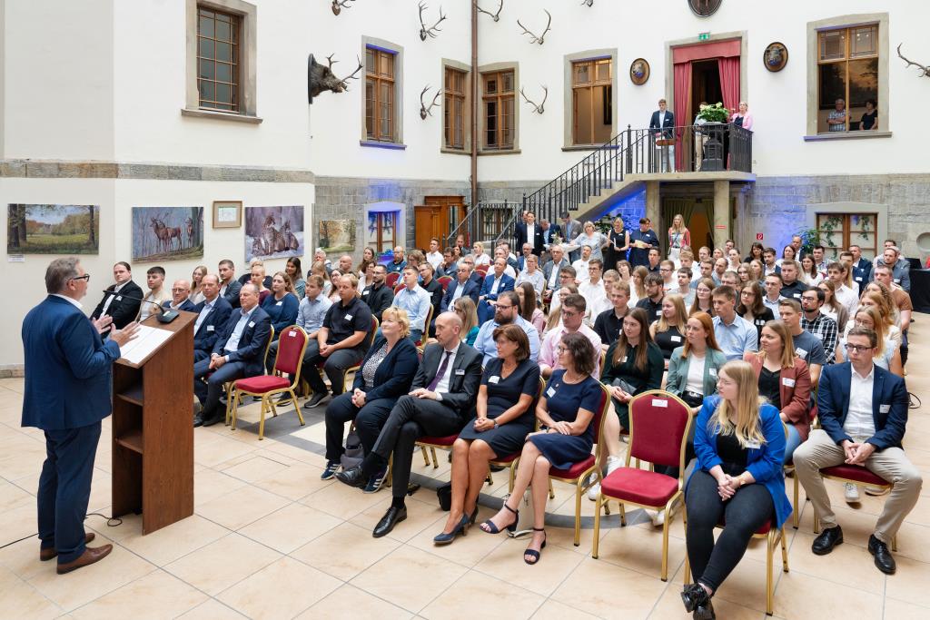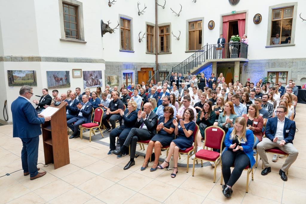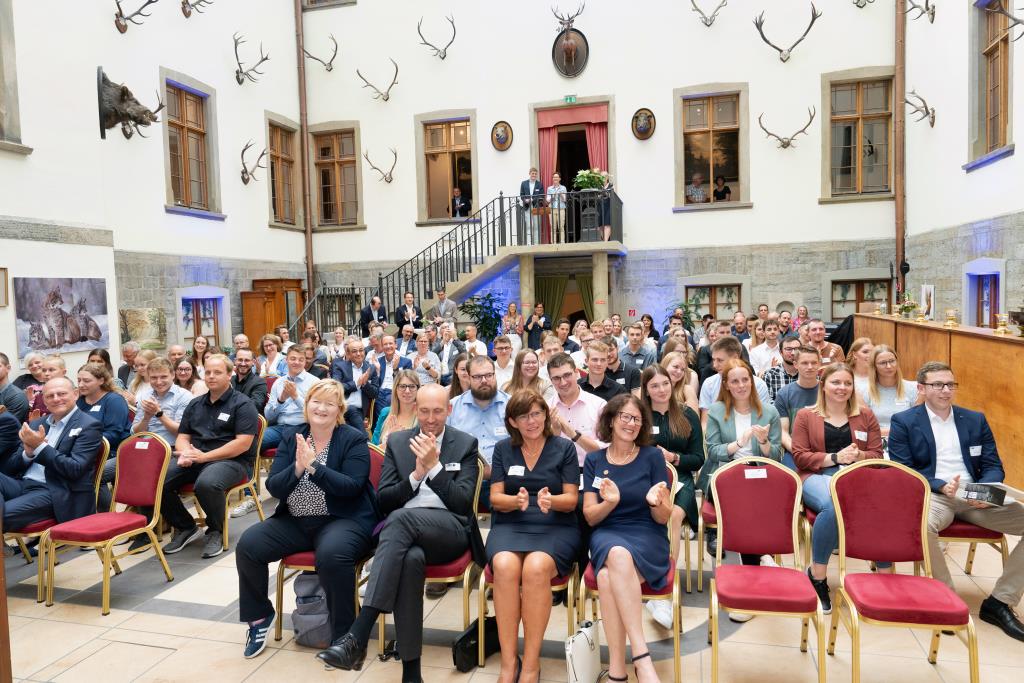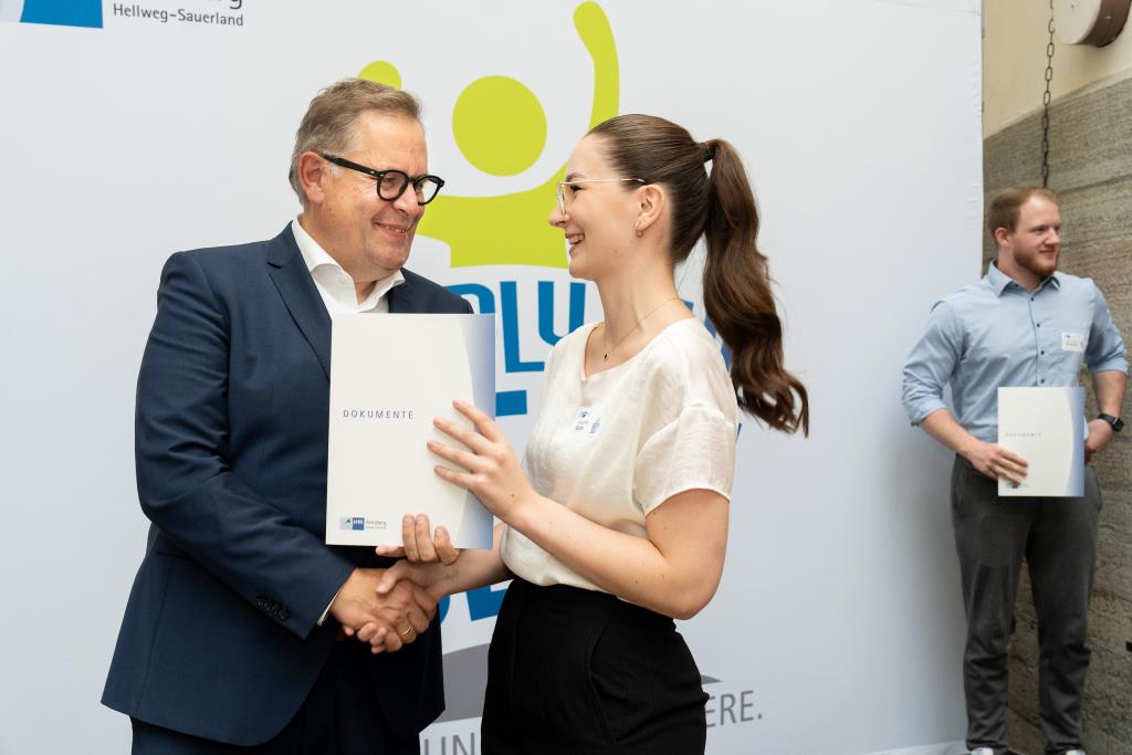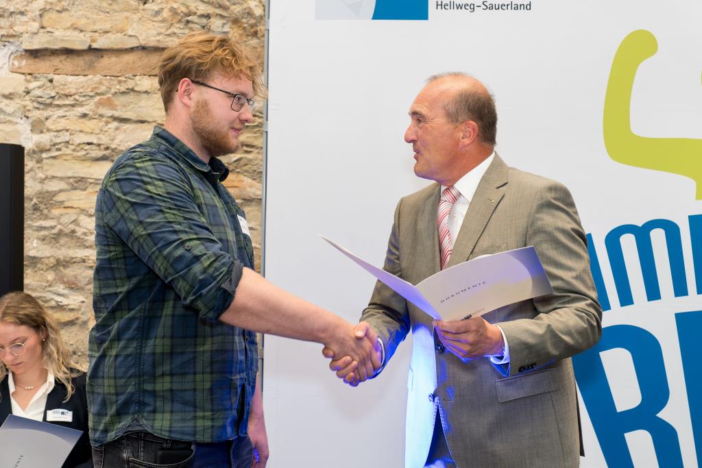Beim Festakt für den Hochsauerlandkreis im Jagdschloss von Arnsberg-Herdringen begrüßte Andreas Knappstein die Geehrten in seiner Laudatio. „Herzlich Willkommen in Ihrer Zukunft. Sie haben bewiesen, dass Lernen Spaß macht und Spaß ist Leistung, die sich auszahlt. Wir sind stolz auf Sie und Sie können es auch auf sich sein.“