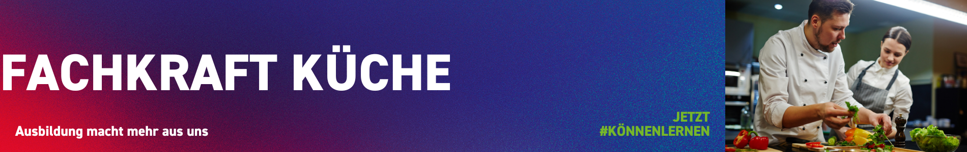 Der neue Ausbildungsberuf Fachkraft Küche richtet sich an alle, die professionelles Kochen von Grund auf praktisch lernen wollen, sich jedoch weniger mit Theorie und Zahlen beschäftigen möchten. Fachkräfte Küche kennen sich aus mit dem Küchen-Einmaleins: Sie lernen die Verarbeitung und Zubereitung von Lebensmitteln aller Art. Sie wissen, wie einfache Speisen und Gerichte aus Fleisch, Fisch und Gemüse zubereitet werden. Sie können Salate und Desserts anrichten und garnieren und einfache Suppen und Soßen herstellen. Dafür lernen sie unterschiedliche Arbeits- und Schnitttechniken und Garverfahren sowie den Umgang mit Rezepturen und Küchengeräten. Außerdem können sie Waren annehmen und einlagern und kennen sich mit Hygiene aus.
