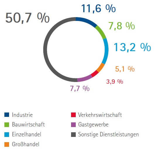 • Stark vertreten: Dienstleistungsbranchen, gefolgt von Einzelhandel und Industrie