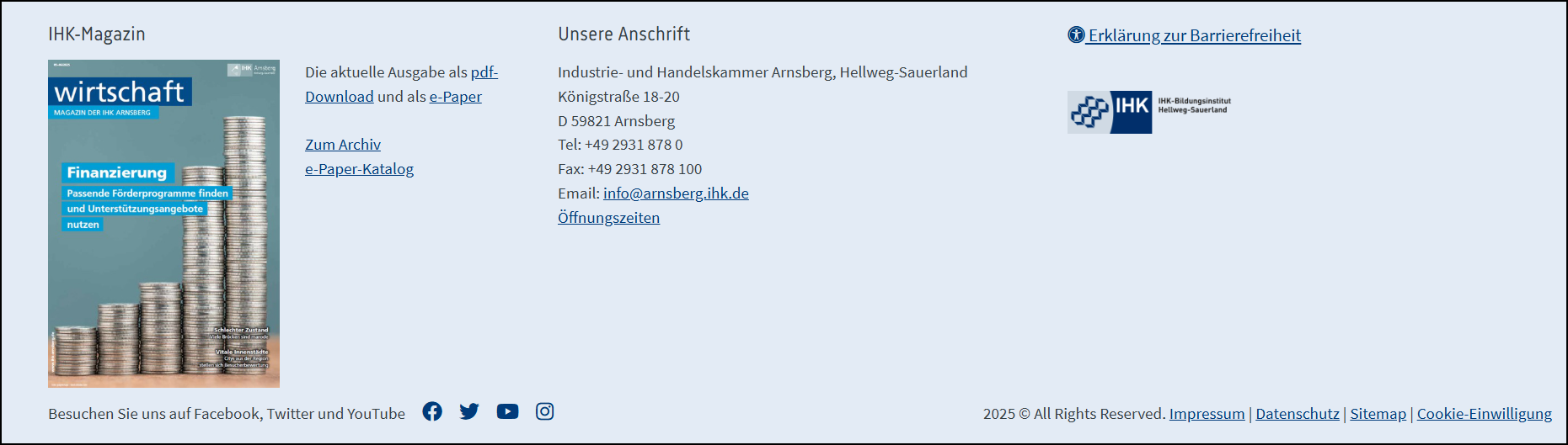 Oben links auf der Seite ist das Logo von der IHK Arnsberg.