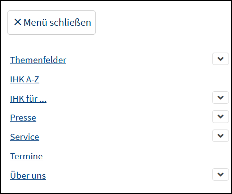 Dann klicken Sie im Menü rechts auf den Pfeil.
