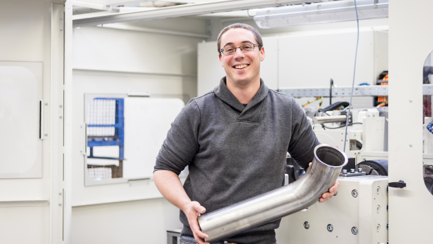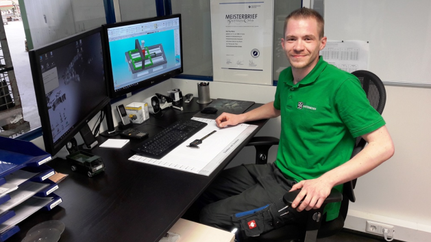 Marcus Böhmer arbeitet als Konstrukteur bei der Firma Transfluid Maschinenbau GmbH. Nach seiner Ausbildung hat er ein Maschinenbau-Bachelorstudium in Meschede absolviert und konstruiert jetzt Rohrumformmaschinen für seinen Arbeitgeber in Schmallenberg. Für seine Abschlussarbeit hat er eine Maschine mit einer neuartigen Technologie entwickelt, die Rohre durch einen hohen Innendruck umformt und das in Hochgeschwindigkeit.